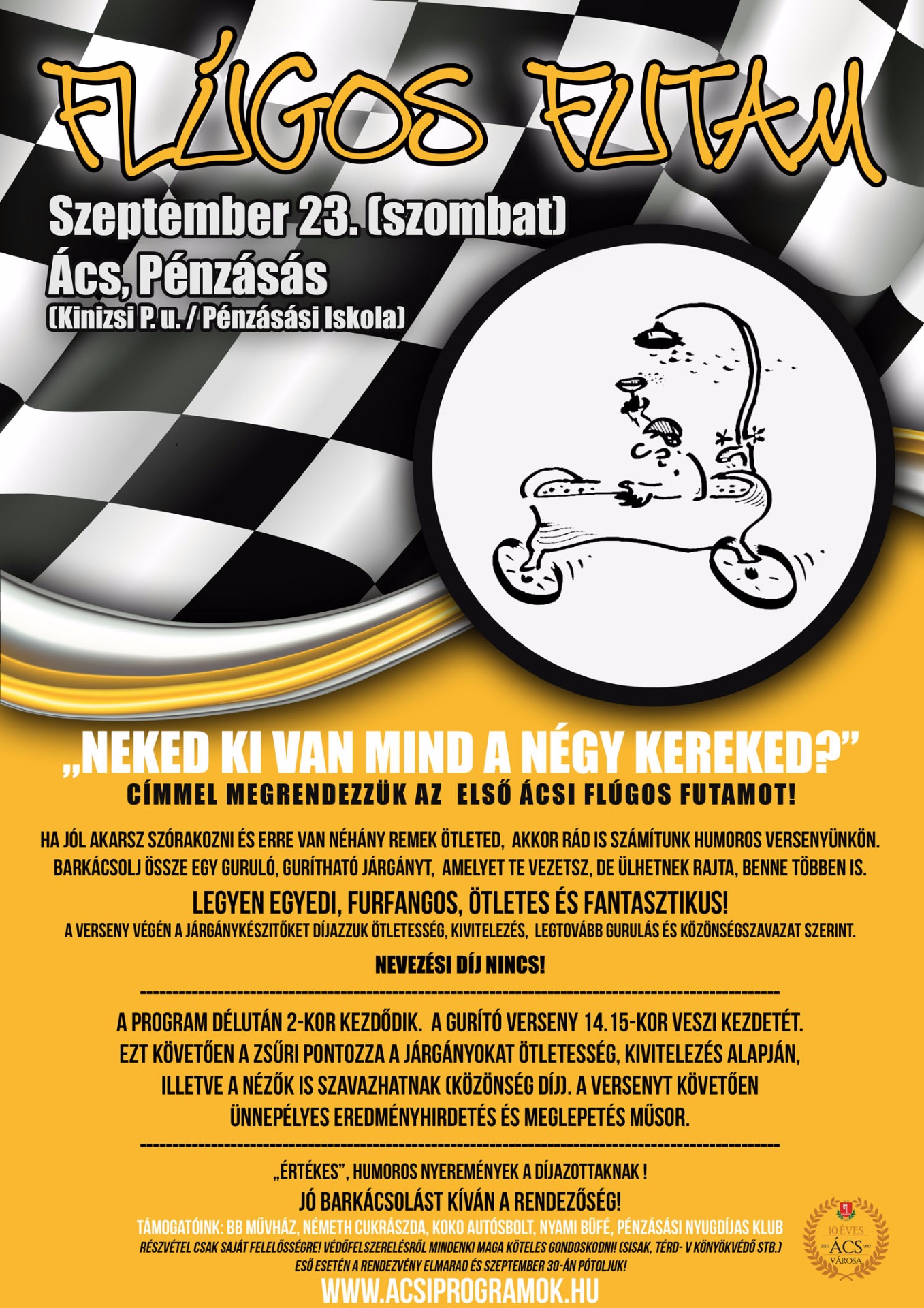 Tájékoztatjuk az érdeklődőket, hogy az Ácsi Városi Vigasságok keretében meghirdetett motoros felvonulás, a kedvezőtlen időjárási körülmények miatt elmarad! A motorosokat természetesen ettől függetlenül szeretettel várjuk a koncertekre, amelyeket a sátorban eső esetén is megtartunk. Megértésüket köszönjük!